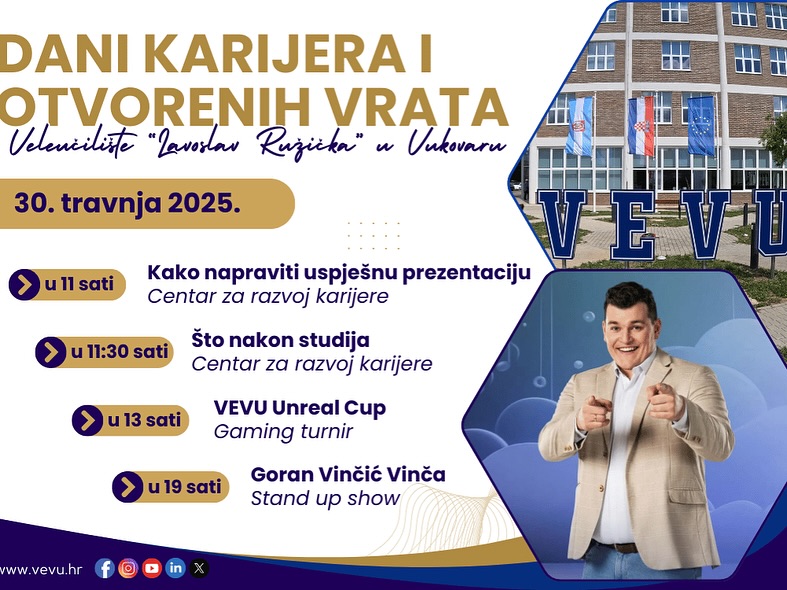 Treći dan programa u okviru ovogodišnjih Dana karijera i otvorenih vrata VEVU 2025. bio je rezerviran za radionice u organizaciji Centra za razvoj karijera i veleučilišne knjižnice. Na radionicama su studenti saznali kako napraviti uspješnu prezentaciju i predstaviti se poslodavcima te što im je činiti nakon završetka studija u traženju odgovarajućeg radnog mjesta na tržištu rada.