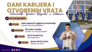 Veleučilište „Lavoslav Ružička“ u Vukovaru i Centar za razvoj karijera i ove godine organiziraju Dane karijera i otvorenih vrata VEVU 2025. koji će se održati od 28. do 30. travnja 2025. godine u prostorijama Veleučilišta.