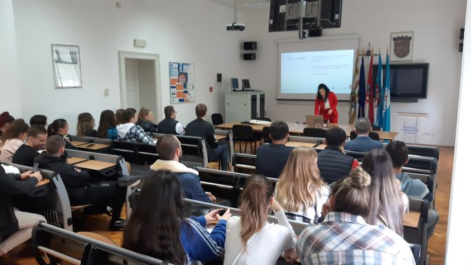Naši studenti su na ovom predavanju imali priliku naučiti nešto više o tome što su mediji, kako ih razumjeti, o masovnoj komunikaciji, manipulaciji medijima, odnosima s javnošću i srodnim disciplinama, a na kraju su imali priliku i demonstrirati svoje shvaćanje odnosa s javnošću na studiji slučaja gdje su dobili zadatak “zastupanja” jedne od 4 ponuđene poznate osobe.